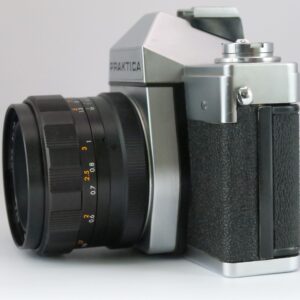 De Praktica LTL3 is een robuuste spiegelreflexcamera uit de jaren ’70, geproduceerd in de DDR. Deze camera beschikt over een ingebouwde lichtmeter en werkt met de populaire M42-lensvatting, waardoor er veel lenzen beschikbaar zijn.